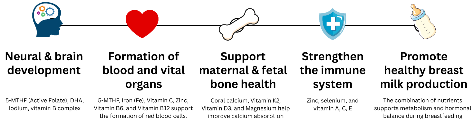 • Coral Calcium, Vitamin K2 (MenaQ7®), Vitamin D3, and Magnesium work synergistically to prevent calcium paradox, ensuring strong maternal bones and optimal fetal bone development.